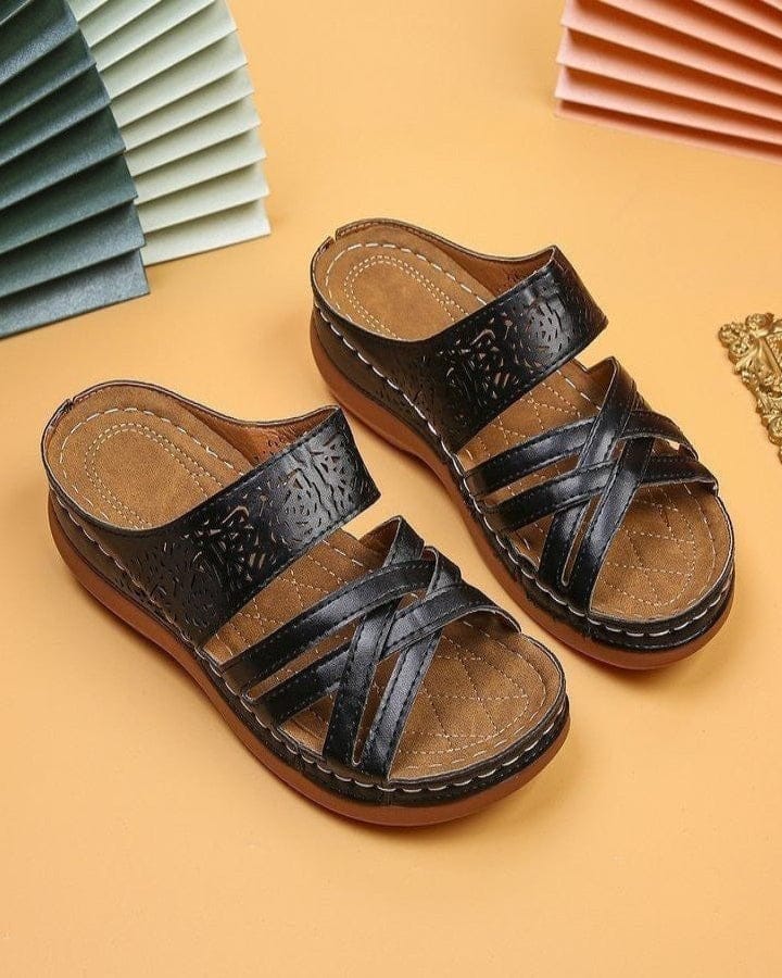 Dotées d’une plateforme stable et légère, ces sandales sont parfaites pour les promenades, les sorties ou les moments de détente, offrant une silhouette allongée sans inconfort grâce à leur design ergonomique.