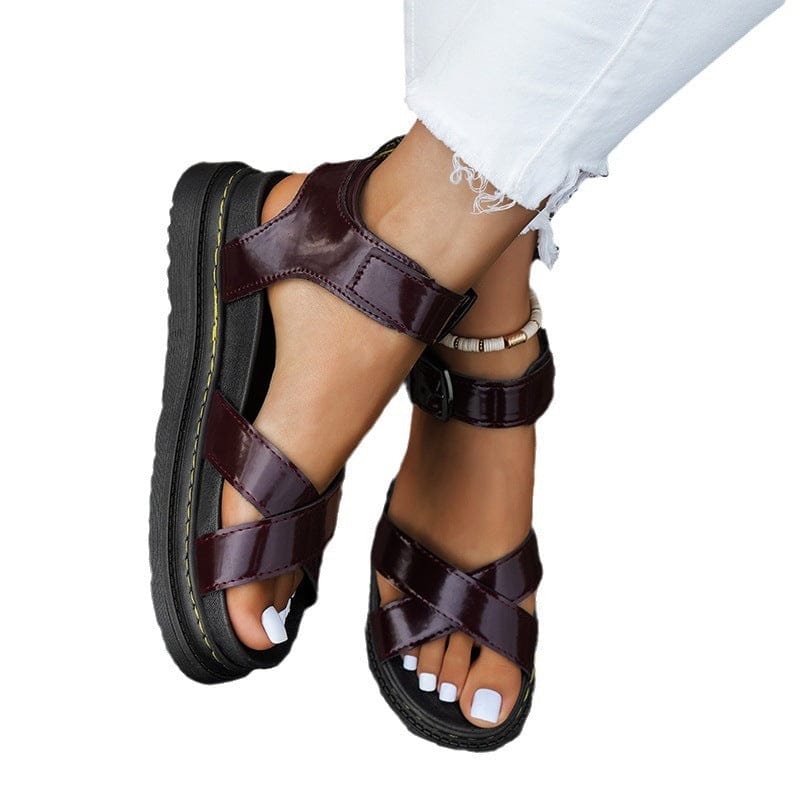 Donnez à vos pieds un look moderne avec un design romain unique inspiré du classicisme, où les sangles croisées s'entrelacent sur la semelle épaisse pour captiver l'attention dès le premier pas