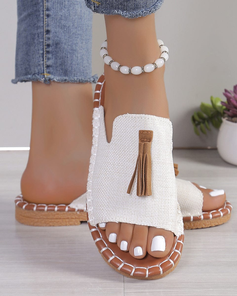 Plongez dans l'élégance estivale avec ces sandales plates ornées d'élégants pompons. Leur design dégage une touche artistique inspirée du style bohème contemporain.