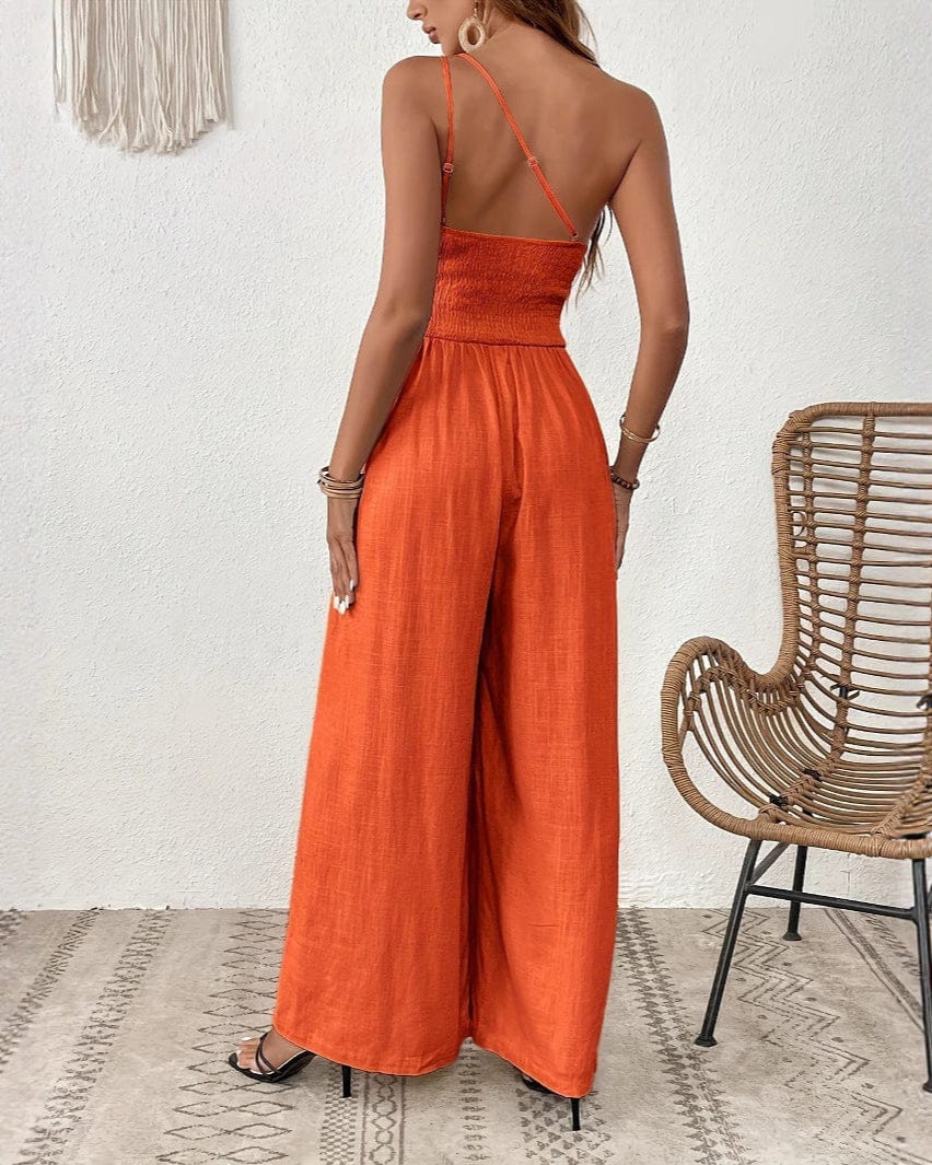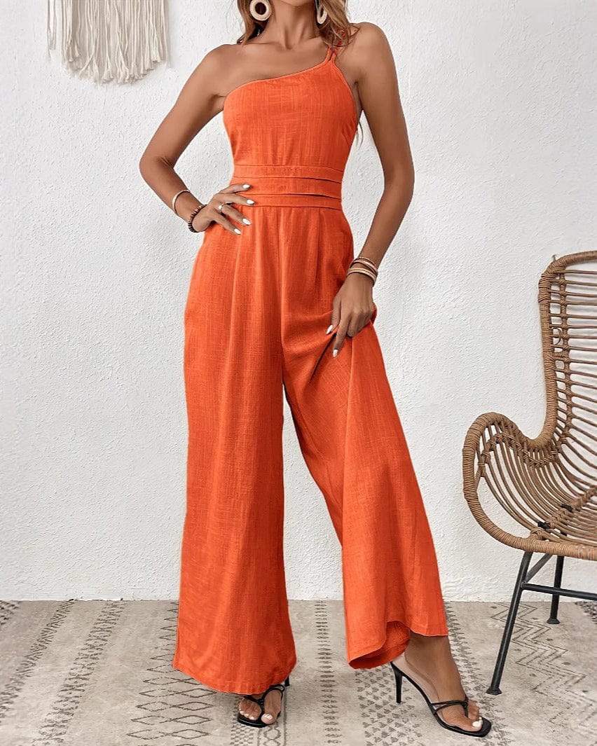 Démarquez-vous avec un look sophistiqué et féminin grâce à cette combinaison asymétrique, soigneusement conçue pour sublimer la beauté du haut du corps dans un style moderne et saisissant.